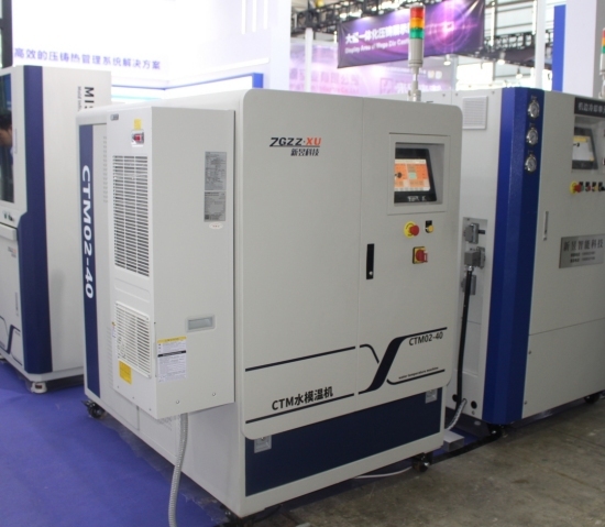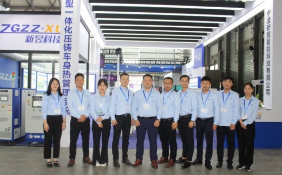 新昱智能參展團(tuán)隊(duì),左五為公司總經(jīng)理王蘇華先生、左四為銷售總監(jiān)劉傳臺(tái)先生 新昱科技銷售總監(jiān)劉傳臺(tái)先生表示:“針對新能源汽車和“大型一體化壓鑄”對超大溫控組單元及數(shù)量眾多的水溫機(jī)的要求,新昱科技加大研發(fā)投入,歷時(shí)三年成功開發(fā)出CTM大型高溫水路控制系統(tǒng)(簡稱:CTM)。單臺(tái)CTM大型高溫水路控制系統(tǒng),可替代溫控組單元中的十多臺(tái)水溫機(jī),使得超大型壓鑄島溫控組單元更加節(jié)省占地空間、節(jié)省成本、節(jié)能降耗以及精準(zhǔn)溫控。”