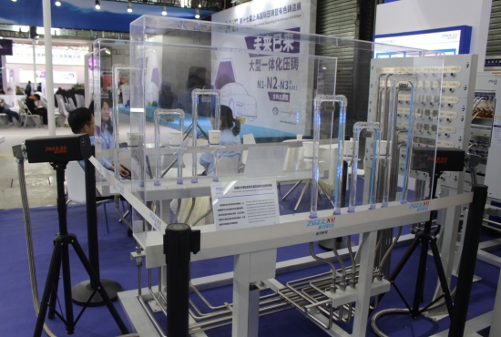 ![]() 新昱科技展臺(tái)吸引眾多專業(yè)觀眾及買家前來咨詢商洽 日前(2023年7月12日-14日),“2023上海國際壓鑄展”在上海新國際博覽中心隆重舉行。本屆展會(huì),吸引了463家來自壓鑄及有色鑄造企業(yè)參展,展覽面積達(dá)36900平方米,參觀人數(shù)超過25000人次,均創(chuàng)歷史新高。各參展商帶來了眾多新產(chǎn)品、新技術(shù)及解決方案,集中展示,同臺(tái)競技。專業(yè)工業(yè)溫控設(shè)備制造商——寧波新昱智能科技有限公司(簡稱“新昱科技”)“亮相”展會(huì),攜多款壓鑄溫控設(shè)備參展,并首次展出的MISS模具紅外感知系統(tǒng)。 溫控設(shè)備在壓鑄生產(chǎn)中提升鑄件質(zhì)量的作用越來越突出。隨著壓鑄行業(yè)轉(zhuǎn)型升級加速,用戶對鑄件的品質(zhì)要求越來越高,這為溫控設(shè)備廠商帶來機(jī)遇與挑戰(zhàn)。新昱科技系專業(yè)提供壓鑄溫控設(shè)備及溫控島解決方案的企業(yè)。本屆展會(huì),新昱科技展示了創(chuàng)新產(chǎn)品——CTM中央水路控制系統(tǒng),MISS模具紅外感知系統(tǒng),以及水模溫機(jī)、油模溫機(jī)、高壓點(diǎn)冷機(jī)、機(jī)邊冷卻單元以及CTCU模溫集中控制系統(tǒng)?,F(xiàn)場,還展示了以模具紅外感知系統(tǒng)與溫控設(shè)備聯(lián)合閉環(huán)控制的3D模型。