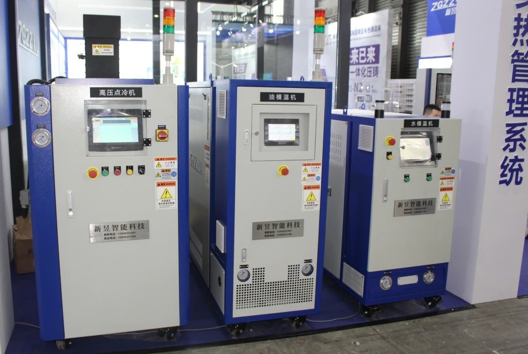 機(jī)邊冷卻單元 作為專業(yè)壓鑄溫控設(shè)備制造商,新昱科技現(xiàn)場還展示了高壓點(diǎn)冷機(jī)、機(jī)邊冷卻單元、水模溫機(jī)、油模溫機(jī),為壓鑄生產(chǎn)提供一站式、全面的溫控設(shè)備及系統(tǒng)解決方案。