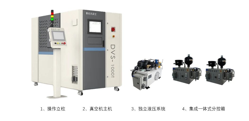 ![]() 賽亞杰DVS-1000T分體式真空機 在新能源汽車零部件壓鑄成型領域,對壓鑄件的產品品質要求日益嚴格,高真空壓鑄技術對壓鑄件質量和成品率具有至關重要的影響。賽亞杰技術團隊經過不懈努力,隆重推出2024款DVS系列真空機,并對SVS系列超大型壓鑄真空系統進行全面升級及性能提升。 2024款DVS系列真空機的優勢: 1.高度靈活的分組控制: 每組分控單元均可獨立控制,支持液壓閥、機械閥、排氣塊等多種組件的靈活搭配使用,例如1號通道使用液壓閥,2號通道使用排氣塊等,滿足多樣化生產需求。 2.三系統合一的高效集成: 將獨立液系統、抽真空系統、污染度吹掃系統三大系統完美融合。其中獨立液壓系統為賽亞杰專利產品,具有節能、穩定、響應速度快、曲線分析故障監控等多重優勢。 3.集成一體式分控箱單元: 市場上現有產品及傳統方案需要在壓鑄機上安裝分控箱、蓄能器閥組等多個部件,占用大量空間。賽亞杰新開發的一體式分控箱設計,顯著節約了安裝空間,減少了線路復雜度。 針對SVS系列在超大型一體化壓鑄方面的應用,賽亞杰投入巨資并派遣專業技術團隊進行產品優化開發。目前,已有6000T-20000T及萬噸雙壓射機型成功投放市場。超大型真空系統采用模塊化設計,包括真空泵站、控制系統、液壓系統、分控箱模塊等,可根據客戶需求定制從8組模具抽真空到16組模具抽真空、單壓射料筒抽真空到雙壓射料筒抽真空及頂針室抽真空等多種配置。 SVS系列超大型壓鑄真空系統的優勢: 1.多樣化的真空泵組選擇: 可根據客戶需求提供性價比高的旋片式真空泵組,以及與德國專業真空泵組廠家合作開發的無油免維護真空泵組和變頻油螺桿式真空泵組。 2.節能高效的真空泵站: 結合賽亞杰V3.0框架平臺,真空泵站具有節能、維護不停機及零停機風險等多重優勢。 3.先進的控制技術: 基于德國BECKHOFF PC和Ether CAT控制技術,掃描周期更快,數據處理速度更快,實現與主機的實時通訊,并通過壓射位置進行實時控制(精度控制在2mm以內)。 4.便捷的數據采集功能: 支持通過RJ45連接(PROFINET、Modbus TCP/IP)實現數據采集,便于MES系統的集成和應用。
