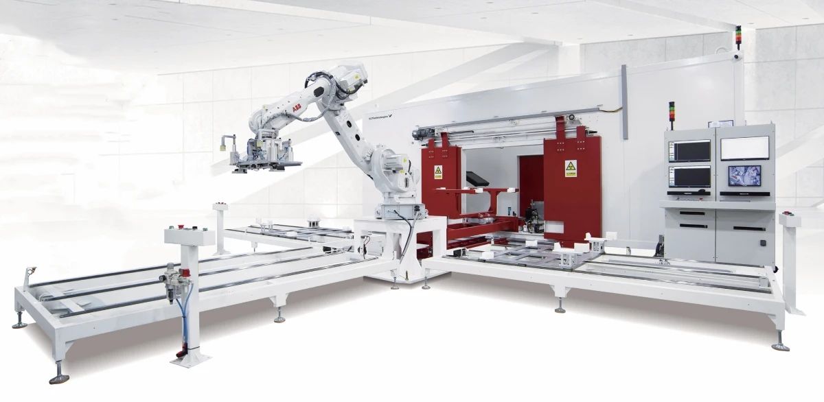 ![]() DRDCL 檢測系統(tǒng) 作為國際知名的 X 射線檢測解決方案提供商,偉杰科技(VJ Technologies)為國內(nèi)某汽車零部件上市企業(yè)量身打造了 DRDCL 檢測系統(tǒng)。該系統(tǒng)的創(chuàng)新亮點在于其獨特的循環(huán)工作臺設(shè)計。通過將傳統(tǒng)單進單出傳輸模式升級為循環(huán)傳輸模式,這一設(shè)計不僅顯著提升了空間利用率,還大幅優(yōu)化了檢測效率。 具體而言,DRDCL 檢測系統(tǒng)巧妙利用設(shè)備頂部空間,構(gòu)建了一套立體循環(huán)的架空傳送系統(tǒng)。這一設(shè)計使工作臺能夠平穩(wěn)地托著工件從一側(cè)進入鉛房進行X射線檢測,并在檢測完成后從另一側(cè)出來,良品和不良品分別通過機器人下料。相比傳統(tǒng) X 射線檢測系統(tǒng),DRDCL 的循環(huán)工作臺設(shè)計大幅減少了設(shè)備占地面積,僅需在一側(cè)設(shè)置上下料機器人,即可實現(xiàn)全自動的生產(chǎn),從而實現(xiàn)了更緊湊高效的空間布局。 在檢測效率方面,DRDCL 系統(tǒng)同樣表現(xiàn)出色。其循環(huán)工作臺設(shè)計支持鑄件檢測、上料和下料同步進行,鑄件流轉(zhuǎn)更加順暢,等待時間顯著減少,整體檢測效率得以大幅提升。此次推出的 DRDCL 檢測系統(tǒng),憑借其創(chuàng)新的循環(huán)工作臺設(shè)計,不僅解決了傳統(tǒng)檢測系統(tǒng)占地面積大、效率低的問題,更為鑄件 X 射線檢測行業(yè)提供了全新的解決方案。 全方位無損檢測方案滿足各領(lǐng)域應(yīng)用需求 偉杰科技的產(chǎn)品線涵蓋了全方位的無損檢測方案,滿足各領(lǐng)域應(yīng)用需求。其產(chǎn)品包括 RIX 轉(zhuǎn)盤式檢測系統(tǒng)、MRIX 轉(zhuǎn)盤式檢測系統(tǒng)、托盤通過式檢測系統(tǒng)、DRDC 檢測系統(tǒng)、C-Arm 五軸式全能檢測系統(tǒng)、VedaCT 高精密型工業(yè) CT 和 ValuCT 緊湊型工業(yè) CT 等。這些系統(tǒng)不僅滿足了不同行業(yè)對檢測精度和效率的多樣化需求,也充分體現(xiàn)了偉杰科技在 X 射線檢測技術(shù)領(lǐng)域的深厚積累。 RIX系統(tǒng)以多規(guī)格適配性和高效的生產(chǎn)效率見長,適用于轉(zhuǎn)向節(jié)、副車架等各類尺寸工件的檢測。MRIX 系統(tǒng)通過雙工位設(shè)計,實現(xiàn)了鉛房內(nèi)部檢測與外部上下料的同步操作,特別適合超大工件的高效率檢測。