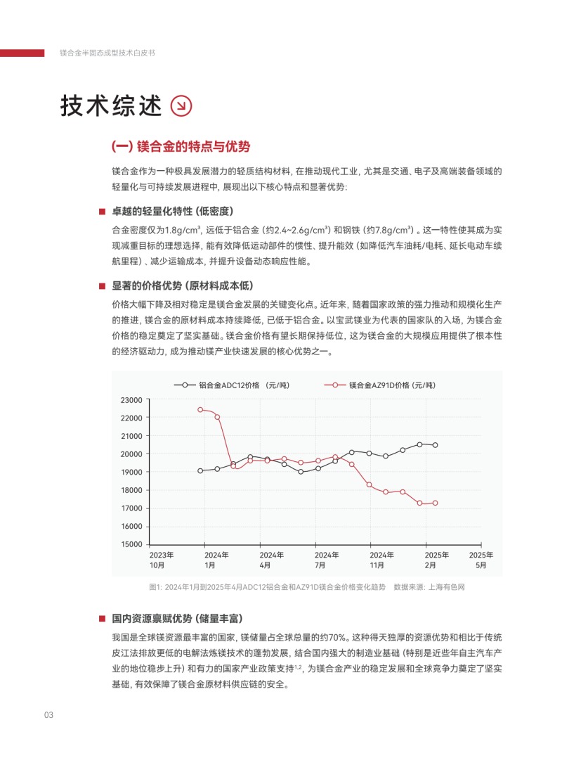 該白皮書系統梳理了鎂合金半固態成型的技術的優勢、挑戰、市場格局與創新實踐,剖析數字技術在該領域的關鍵支撐作用與未來融合趨勢,為產業界把握技術發展脈絡、推動輕量化制造升級提供了重要參考。