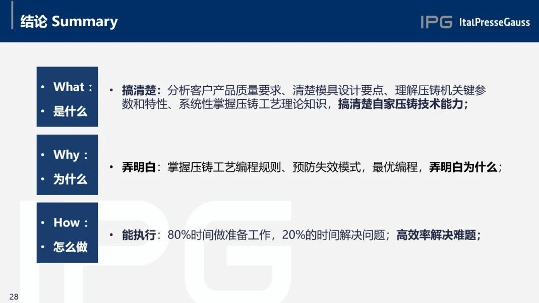模塊化設(shè)計(jì),針對(duì)您的特定產(chǎn)品需求進(jìn)行優(yōu)化 02 論壇報(bào)告分享 意特佩雷斯高斯也榮幸在7月16日的"壓鑄產(chǎn)業(yè)鏈技術(shù)發(fā)展論壇"上發(fā)表了題為《掌控壓鑄機(jī)技術(shù),提高壓鑄生產(chǎn)穩(wěn)健性》的演講。主要介紹了壓鑄生產(chǎn)運(yùn)營(yíng)管理工具OEE,壓鑄機(jī)關(guān)鍵壓鑄技術(shù)參數(shù)研究,以及如何掌控壓鑄機(jī)技術(shù)。