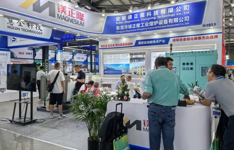 ![]() 鎂正隆參展團(tuán)隊合影 近日,第十九屆上海國際壓鑄暨有色鑄造展在上海新國際博覽中心圓滿落幕。 在本屆展會上,東莞市鎂正隆工業(yè)熔爐設(shè)備有限公司/安徽鎂正隆科技有限公司(以下簡稱“鎂正隆”)全方位呈現(xiàn)了其技術(shù)領(lǐng)先的鎂合金定量爐。現(xiàn)場展示的 MD 系列鎂合金定量爐,具備定量精度高、節(jié)能環(huán)保、維護(hù)簡易、使用壽命長等顯著優(yōu)點(diǎn),提供了適用于配套200T至9000T壓鑄機(jī)的各種型號產(chǎn)品。 鎂正隆的 MD 系列鎂合金定量爐,采用雙室雙泵結(jié)構(gòu),其中雙泵為一個定量泵和一個轉(zhuǎn)液泵。這種設(shè)計使得定量更加精準(zhǔn),鎂液轉(zhuǎn)運(yùn)過程穩(wěn)定可靠。與傳統(tǒng)的單泵結(jié)構(gòu)相比,該結(jié)構(gòu)大幅提高了壓鑄產(chǎn)品的良品率,同時有效節(jié)約了原材料消耗。此外,該系列采用了鎂正隆專屬的發(fā)明專利——直通式定量泵,這種設(shè)計可以實現(xiàn)鎂液的快速而準(zhǔn)確地澆注到料筒中,減少熱量損失,從而提升成型品質(zhì)。與傳統(tǒng)鵝頸式定量泵相比,直通式設(shè)計避免了因鎂液凝固導(dǎo)致的泵底殼堵塞問題,保障生產(chǎn)的連續(xù)性。這不僅減少了維護(hù)時間,提高了生產(chǎn)效率,還降低了維護(hù)成本。