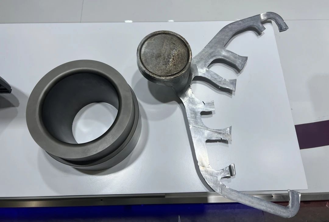 博樂現場展示的實物產品 另外,博樂全新推出的隨形水路分流錐和澆口套產品方案成為現場的技術焦點。在實物展示區,許多觀眾駐足咨詢。該方案憑借獨到的冷卻設計方案和優異的冷卻表現,有助于縮短生產節拍,降低滲水風險,提高生產穩定性,能夠幫助鑄造企業節省大量成本。