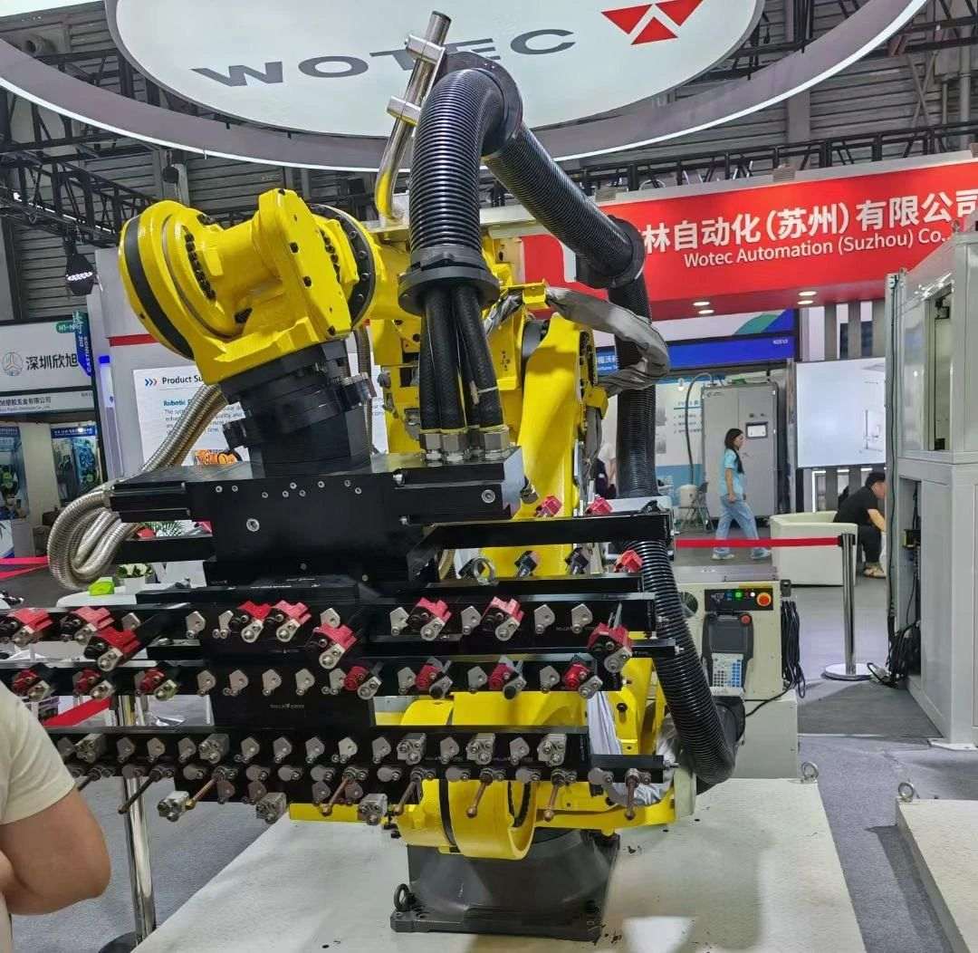 ![]() 沃爾林自動化副總經(jīng)理韓剛與德國沃爾林同事 近期,第十九屆上海國際壓鑄暨有色鑄造展在上海新國際博覽中心隆重舉行。作為壓鑄島自動化整體解決方案提供商,沃爾林自動化(蘇州)有限公司(簡稱“沃爾林自動化”)攜多款核心產(chǎn)品與創(chuàng)新技術(shù)亮相行業(yè)年度盛會,集中展示了其在壓鑄自動化領(lǐng)域的積累與實(shí)力。 本次展會,沃爾林自動化重點(diǎn)推薦其大型壓鑄島自動化集成解決方案,并現(xiàn)場實(shí)物展出多款應(yīng)用于大型及超大型壓鑄島的智能仿形噴涂系統(tǒng)、大型制品抓取系統(tǒng)、自動伺服鋸床系統(tǒng)、脫模劑供液系統(tǒng)等核心技術(shù)及關(guān)鍵設(shè)備,全面呈現(xiàn)智能化、模塊化、高效節(jié)能的現(xiàn)代壓鑄生產(chǎn)生態(tài)。 智能仿形噴涂系統(tǒng):精準(zhǔn)高效,靈活適配 沃爾林自動化展出的仿形噴涂系統(tǒng)采用模塊化設(shè)計,噴頭內(nèi)部管路由高精度鋁制模塊鉆孔成型,結(jié)合平面密封結(jié)構(gòu),有效防止漏水漏氣,確保系統(tǒng)長期穩(wěn)定運(yùn)行。大通徑設(shè)計保障多噴嘴同時開啟時仍具備充足的水氣供應(yīng)能力。