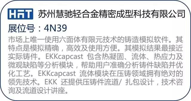 圖2 模擬最終設計的澆口系統 “為了開發使框架鑄件具有最小變形的澆注系統,軟件發揮了關鍵作用,”Schmidyt說。“能夠快速測試不同設計的可能的效果是很重要的,這能使我們設計的澆口系統對鑄件產生盡可能小的作用力。” 設計完成后,就要將設計變成現實。設計和安置壓鑄插件以及冷卻線路也是一個挑戰。DGS采用模擬軟件預測壓鑄半模的冷卻,半模分別重14.1 t和20.3 t。 “盡管壓射的金屬液重量為24 kg,鑄件重量僅僅6.3 kg,充型時間僅僅40 ms,現在所生產的框架鑄件并沒有明顯變形。”Schmidt說。 采用軟件模擬技術已成為開發加工新產品的重要方法,可以縮短壓鑄件研發周期并大大降低研發成本。7 月19 - 21日,上海新國際博覽中心W4-W5館,CHINA DIECASTING 2017 第十二屆中國國際壓鑄會議暨展覽會。來現場看看國內外模擬軟件品牌如何神奇地轉換“虛擬”與“現實”吧! *部分內容來源:《鑄造》雜志 CHINA DIECASTING 2017 第十二屆中國國際壓鑄會議暨展覽會 推薦以下壓鑄模擬軟件品牌