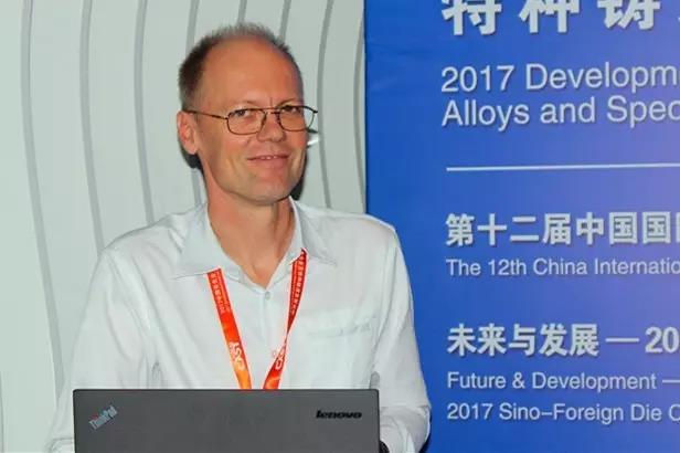 對針孔缺陷的試驗研究表明,隨著針孔缺陷射線等級的增加,軸向R=0.1下的疲勞極限逐漸降低,針孔缺陷射線為2-3級時,疲勞極限約為70MPa,針孔缺陷射線為7-8級時,疲勞極限降低50MPa。在實際生產過程中,通過采取低壓或壓力鑄造工藝,加強精煉除氣,提高鑄件冷兒卻速度等措施,可有效避免疏松和真空的產生,從而提高產品的疲勞性能。 RHEINFELDEN Alloys GmbH&Co.KG的Stuar Wiesner先生以《新款車身用高壓壓鑄合金》為題作報告。Stuar Wiesner先生介紹了多種用于汽車零部件的壓鑄鋁合金材料,這些材料最大的益處是做出來的鑄件不需要做熱處理,因為熱處理會導致鑄件變形。他介紹了該公司的CASTADUCT-42、MAGSIMAL-PLUS、SILAFONT-38、ASTAMAN-35等多用壓鑄用高壓壓鑄鋁合金,擁有良好的物化性能,用于不同的領域,比如汽車車門框、減震塔等結構件,還有動力系統變速器的殼體等。