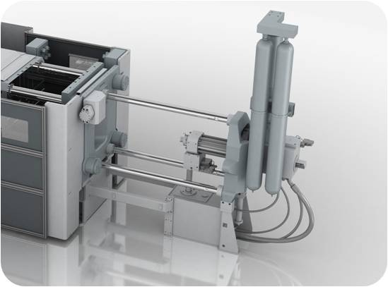 K系列合模系統 K系列冷室壓鑄機對壓射系統性能的優化,使得壓射Vmax≥10m/s,Amax≥ 500m/s²,Pmax≥460bar,T3=11ms。通過利用全新專利的增壓概念(無需單向閥),使增壓時間極短;為壓射的第1、2、3階段配備了一個中央活塞儲能器兩個配件改進。使壓鑄件有更大的壓射行程 、更高的工藝靈活性;降低了液壓系統維護成本;生產時最高的重復精度,Cmk≥1,33;標配壓射端實時控制(速度+壓強)。