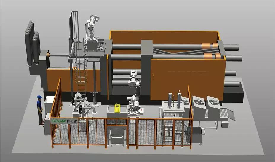 通用壓鑄島 據介紹,早在數年前,伊之密便著眼自動化方面的趨勢,通過引進機器人自動化知名技術團隊,組建機器人自動化事業部,通過三年多的發展,在壓鑄領域產銷額已經達到行業前兩名,為眾多行業龍頭企業、上市公司提供自動化解決方案。除了壓鑄領域,還開始涉足鍛造、橡塑、鑄造、沖壓等特種加工領域的機器人自動化。