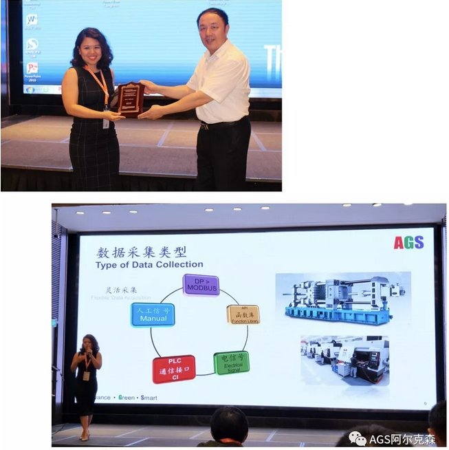 同期活動 1.第十三屆中國國際壓鑄會&第4屆有色合金及特種鑄造國際研討會 由中國機械工程學會鑄造分會主辦的第十三屆中國國際壓鑄會議中,AGS項目經(jīng)理Su Yin, Lim女士介紹了“智能工廠規(guī)劃之機床聯(lián)網(wǎng)”,她分享了通過人機料法環(huán)進行機床數(shù)據(jù)采集,通過物聯(lián)網(wǎng)云計算實現(xiàn)數(shù)據(jù)的價值流動及保護, 通過智能分析進行設備故障診斷,實現(xiàn)設備實時監(jiān)控報警,生產(chǎn)效率匯總?cè)绠a(chǎn)量、績效、能耗、OEE等統(tǒng)計分析,帶給大家全新的數(shù)字化工廠解決方案。