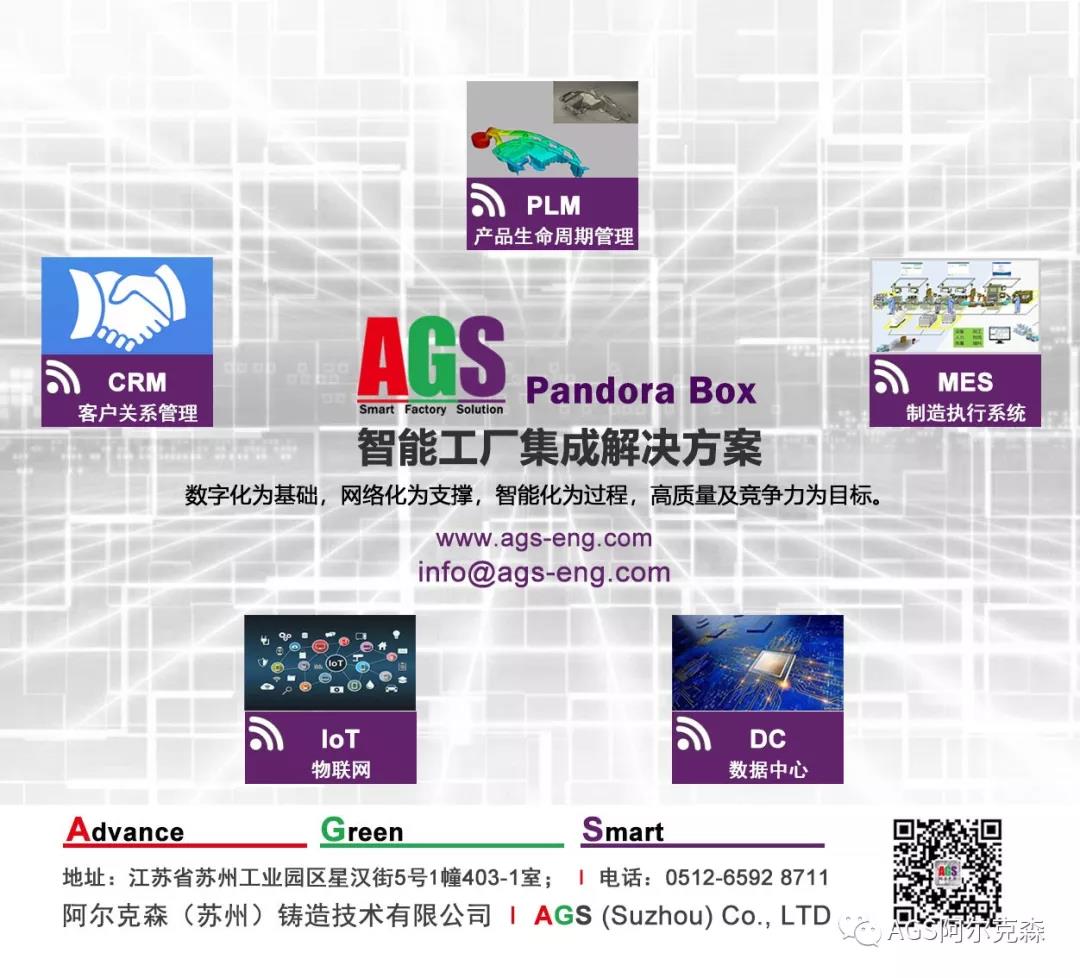 “創(chuàng)新技術(shù)日”之“壓鑄數(shù)字化工廠”的現(xiàn)場,AGS發(fā)布壓鑄行業(yè)數(shù)字化解決方案 AGS利用世界先進科技,十多年對中國鑄造行業(yè)實際情況的認識和研判,軟硬件集成統(tǒng)籌,數(shù)字化為基礎,網(wǎng)絡化為支撐,智能化為過程,高質(zhì)量及競爭力為目標,幫助鑄造廠實現(xiàn)智慧管理新模式。AGS為鑄造廠提供技術(shù)咨詢、技術(shù)改造升級、工藝方案優(yōu)化、培訓及項目服務、一站式智能工廠的解決方案及服務。