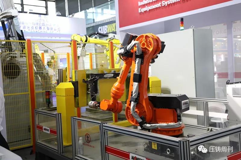 萬豐科技機器人去毛刺單元 機器人去毛刺單元主要針對鎂合金、鋁鑄件毛刺清理工作,產(chǎn)品放置伺服旋轉(zhuǎn)工作臺,旋轉(zhuǎn)進入去毛刺工房內(nèi),機器人通過離線軌跡規(guī)劃,來完成產(chǎn)品的飛邊、毛刺去除工作,有效解決人工打磨操作困難,打磨效率低,良品率低的問題。 創(chuàng)立于1997年的CHINA DIECASTING 中國國際壓鑄展是專注壓鑄全產(chǎn)業(yè)鏈集中展示、交流合作的全球化高端平臺。外部資源引進、壓鑄產(chǎn)業(yè)的國際聯(lián)動及先進的辦展理念將其打造成名副其實的全球壓鑄趨勢發(fā)布之地,行業(yè)精英匯聚之所。萬豐科技通過展會的良好平臺,加深與業(yè)界專家、客戶交流,致力于將萬豐科技打造成全球行業(yè)的領(lǐng)先品牌。