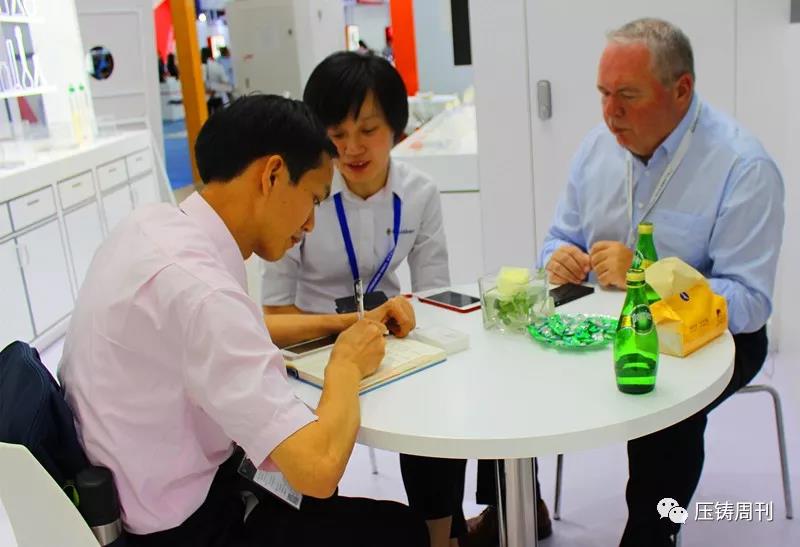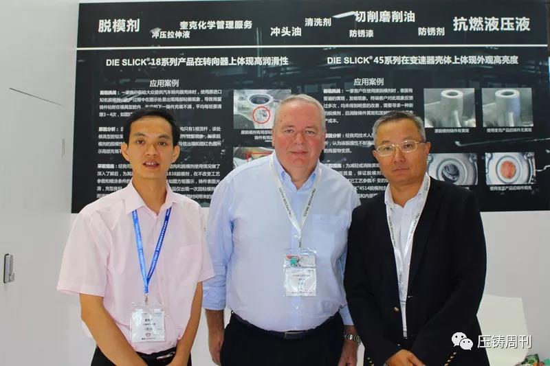Dieter Laininger接受《壓鑄周刊》資訊總監曾偉立的專訪,上圖中為亞太區總裁Dieter Laininger、右為亞太業務總監馬軍,下圖中為奎克中國區市場經理陳佳婷 另外,我認為,我們的另一個優勢就是人才團隊非常穩定,我們的人才流失率非常低,比如,我們現在坐在一起的三個人當中,我服務奎克化學27年,亞太業務總監馬軍18年,中國區市場經理陳佳婷12年,穩定的人才隊伍,是企業穩健快速發展的基礎之一。 為細分領域 用戶提供一站式解決方案 《壓鑄周刊》:您認為奎克化學應該在一些細分領域,比如壓鑄行業,如何保持自身的競爭力? Dieter Laininger:許多細分領域,比較專業,所用產品差別較大。我們以壓鑄這個專業領域為例,為服務這個領域,我們成立專門的壓鑄團隊,針對性地開發產品,服務專業用戶。我們還為這些客戶提供從壓鑄到精密機加工一站式一體化解決方案,我們有非常長的供應鏈,全系列的產品線。