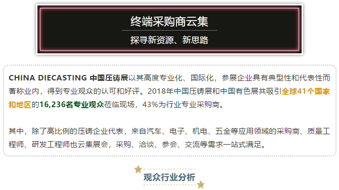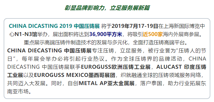 - 壓鑄行業高端會議,聚集高等院校、國家重點實驗室、國內外知名企業的專家學者和業界精英,分享精彩的報告,共謀行業發展 鑄件專題日:優質鑄件、競獎賞析