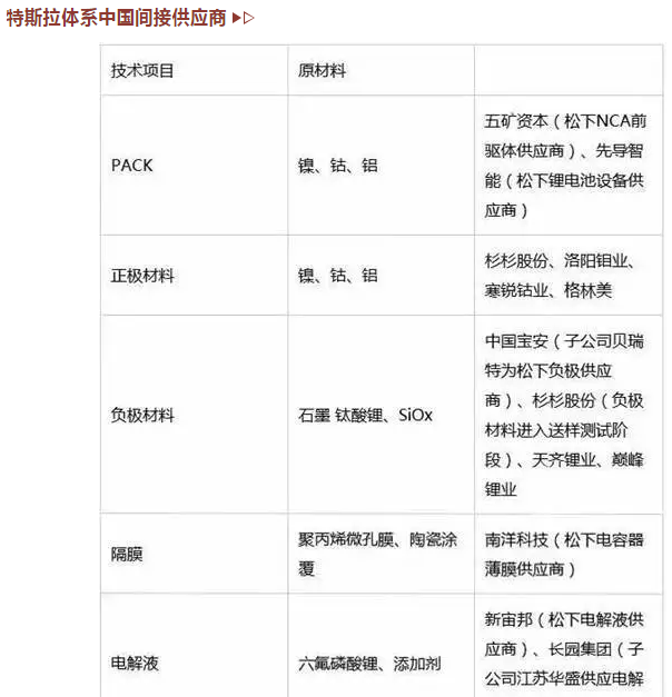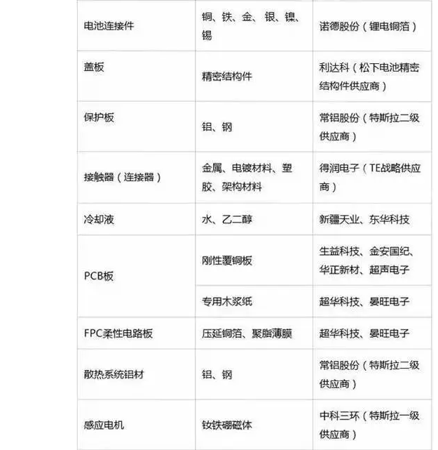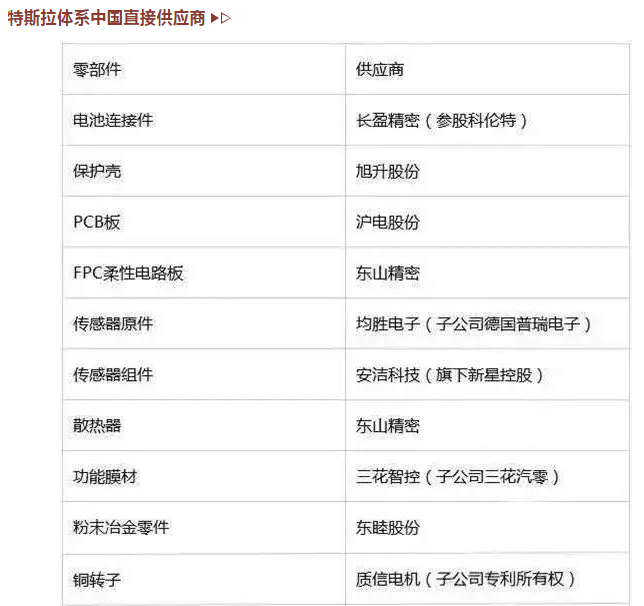 特斯拉最新供應商名單匯總