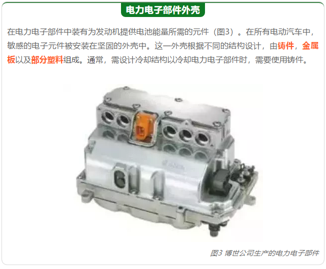 與帶內燃機的車輛相比,電池電力汽車取消了易磨損和/或成本密集型部件,如發動機缸體,變速箱和燃料箱。這不僅帶來了成本優勢,而且至少部分抵消了電池的較大重量。帶電動機的動力總成系統在最多情況下包含以下鑄件(圖1):