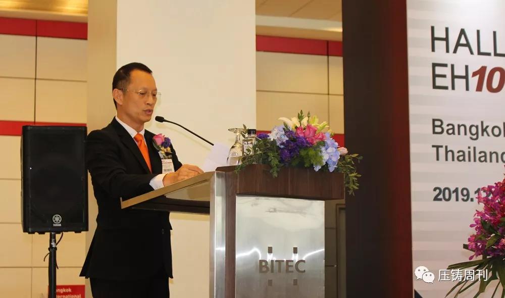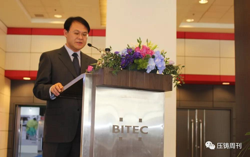 開幕現場 泰國曼谷,當地時間10時,主辦方還舉行了隆重的開幕儀式,沈陽鑄造研究所有限公司總經理唐驥先生致開幕詞、泰國鑄造協會副會長 Rungkamchorn Wannasai先生、泰國會展局展覽部總監 Kanokporn Damrongkul 女士分別致詞。中國機械工程學會工業爐分會理事易光先生、日本輕金屬通信社社長上島孝一先生、紐倫堡博覽集團國際壓鑄項目經理Christopher Boss先生、寧波模具行業協會秘書長張小巖先生、越南鑄造協會國際合作部主任Mike Luu博士、德-泰商會的副總Marius Mehner先生等各界嘉賓出席開幕儀式。