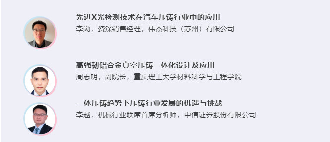 2021年,隨著超大型壓鑄機的發布,意味著全球壓鑄行業正朝著大型化與集成化方向快速前進。與傳統的沖壓焊接成型工藝相比,“一體壓鑄成型工藝”在輕量化、成本等方面具有顯著優勢,壓鑄行業又一次迎來了技術的顛覆。值此行業發展的關鍵期,2022全國壓鑄年會將緊跟產品、技術、市場趨勢,聚焦“大型一體化壓鑄引領的技術創新與產業發展”主題,與壓鑄同仁一起在行業變革中突圍,誠邀各位壓鑄同仁蒞臨參會!