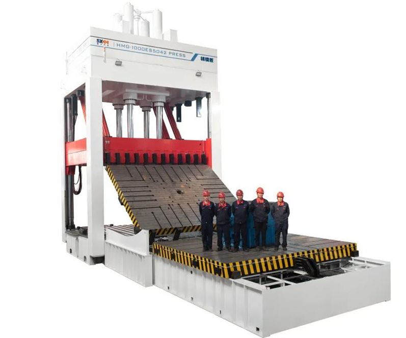 技術革新特點 針對目前一體化成型模具,順興開浩公司研發了最大合模力1000噸,工作臺面5000mm×4200mm的超大型四導柱精密合模機。該超大型配模試驗機,下模可承載260噸整體模具重量,上板可承載110噸模具,并實現180度翻轉功能。動模座配備0.02mm精度點動功能。適用于9000-12000T壓鑄島的模具。