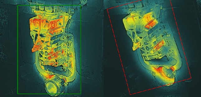 噴涂前 噴涂后 噴涂前后溫度差異 此外,在歷史數據查詢分析軟件中,用戶可以任意選擇兩張圖片進行溫度對比。 二、模具位置精準跟蹤功能。考慮到壓鑄車間惡劣的環境情況,換模觸碰相機、壓鑄過程振動等原因可能導致紅外圖片中預先設定的溫度關注點位置發生偏移,從而影響模具測溫的穩定性。為此,該系統新增了自動識別并跟蹤模具位置的功能,確保測溫區域時刻準確。此功能由系統自動完成,用戶在無需進行任何額外操作的同時,也提升了系統的穩定性和可靠性。
