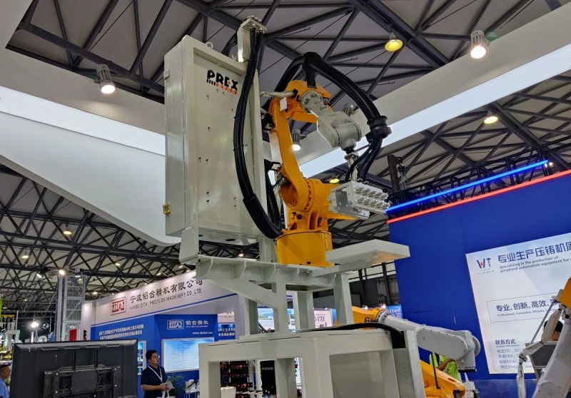 在本屆展會上,上海普萊克斯現(xiàn)場展示了其豐富的產(chǎn)品線,包括工業(yè)機(jī)器人本體、取件裝置、噴涂系統(tǒng)、去毛刺工作站、去渣包裝置等壓鑄自動化設(shè)備及輔助裝置,為壓鑄生產(chǎn)提供從取件、鑲嵌、噴涂、打磨、去毛刺等一站式自動化解決方案。
