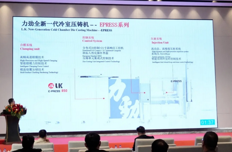 ![]() 圖源:鴻特科技 鴻特科技泰國壓鑄基地主體封頂 11月6日,廣東鴻特科技股份有限公司(簡稱“鴻特科技”)泰國基地封頂儀式在泰國羅勇府正大(CPGC)產(chǎn)業(yè)園舉行。此次封頂,不僅是項目建設(shè)從“主體施工”邁向“設(shè)備安裝、調(diào)試”新階段的重要節(jié)點,更承載著鴻特科技的多重戰(zhàn)略期望。 鴻特科技此前發(fā)布公告稱,公司計劃在泰國投資新建生產(chǎn)基地,以進一步完善其海外戰(zhàn)略布局。新建基地項目選址于泰國羅勇府正大(CPGC)產(chǎn)業(yè)園,建設(shè)內(nèi)容包括土地購置、廠區(qū)建設(shè)、設(shè)備采購及安裝等,主要生產(chǎn)各類汽車鋁合金壓鑄零部件。 力勁EPRESS系列新一代智能冷室壓鑄單元 據(jù)力勁集團消息,11月6日 - 8日,2025年度寧波壓鑄產(chǎn)業(yè)高峰論壇(壓鑄年會)暨北侖模具科技周活動在寧波舉辦。大會上,劉穩(wěn)博士介紹了力勁自主研發(fā)的EPRESS系列新一代智能冷室壓鑄單元,該單元集高精度控制、高動態(tài)性能與綠色節(jié)能設(shè)計于一體。EPRESS系列采用分布式IO控制架構(gòu)與雙閉環(huán)實時控制系統(tǒng),可實現(xiàn)毫秒級動態(tài)響應與工藝自適應控制。