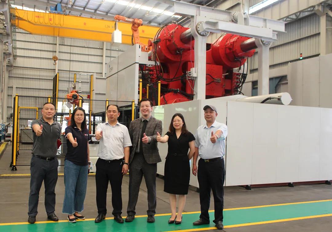 文燦集團、力勁集團高層在驗收儀式上合影 今年5月,文燦集團與力勁集團在上海簽署戰略合作協議,向后者采購7套合模力2800T-6000T的超大型智能壓鑄單元,包括2800T、3500T壓鑄單元各一套、4500T壓鑄單元三套,6000T壓鑄單元兩套。均為力勁集團旗下意德拉IDRA品牌的X-PRESS系列兩模板壓鑄機。截止目前,2800T壓鑄單元已安裝調試完畢,即將發往文燦集團南通工廠;4500T、6000T壓鑄單元已經完成總裝。