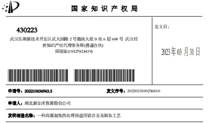 他表示,在一體化壓鑄技術興起下,各大車企也紛紛開啟“一體化壓鑄”的進程,因此一體化壓鑄已成為全行業共同確認的趨勢。在此背景下,極氪建立了大型結構件一體化壓鑄 L4級智慧產線,在一體化壓鑄技術的加持下,L4級智慧產線實現產線自動化率100%,并建立覆蓋全工藝全物料的智慧物流系統及全壽命周期的智慧質量追溯系統在降低制造成本的同時,也大幅提升制造規模,實現降本增效。 亞通精工一體化壓鑄項目已采購4400T壓鑄機 煙臺亞通精工機械股份有限公司(“亞通精工”)近日在回答投資者提問時表示,公司2020年開始布局一體化壓鑄領域,進行了人才及技術儲備,投資建設弗澤瑞廠房及生產線,并已采購4400T冷室臥式壓鑄機。 亞通精工的汽車零部件業務主要是為整車廠提供沖壓及焊接零部件。子公司山東弗澤瑞金屬科技有限公司(“弗澤瑞”)于2017年成立,主要經營金屬材料、金屬鑄壓模具、汽車零部件的設計、加工、制造、銷售等業務。 新金洋免熱處理壓鑄鋁合金發明專利授權 湖北新金洋資源股份公司(簡稱“新金洋”)發布消息,公司研發的一種高強韌免熱處理壓鑄用鋁合金及制備工藝于3月31日授權為發明專利。