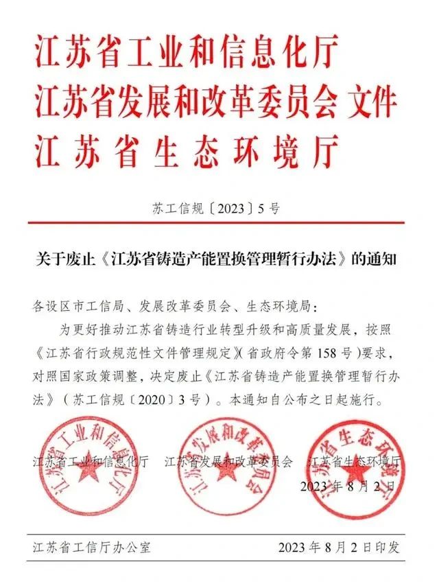 此次擬新設(shè)公司注冊資本 100 萬元墨西哥比索(1 墨西哥元 ≈ 0.4263 人民幣——本刊注),其中,公司出資 1 萬元墨西哥比索,持股 1%;吉岡維爾京出資 99 萬元墨西哥比索,持股 99%。 公告顯示,吉岡精密投資的墨西哥項目預(yù)計總投資 2090 萬美元(1 美元 ≈ 7.2844 人民幣——本刊注),項目分兩期建設(shè)。其中,項目一期建成后預(yù)計年產(chǎn)汽車零配件 80 萬套;二期年產(chǎn)汽車零配件 70 萬套,共計產(chǎn)能數(shù)量約為 150 萬套。 嶸泰股份多個壓鑄工廠正在進(jìn)行設(shè)備安裝 近日,嶸泰股份發(fā)布2023年上半年業(yè)績,公司實現(xiàn)營業(yè)收入9.19億元,同比增長44.81%;凈利潤0.73億元,同比增長44.02%。嶸泰股份表示,公司上半年業(yè)績快速增長,主要系公司積極開拓市場、銷量穩(wěn)步上漲。 嶸泰股份在報告中介紹,目前公司多個生產(chǎn)基地產(chǎn)能步入提升期,大型一體化整裝待發(fā)。其中,嶸泰壓鑄二廠、珠海嶸泰二廠、墨西哥萊昂嶸泰二期已完成廠房建設(shè),設(shè)備安裝調(diào)試如火如荼。嶸泰壓鑄二廠新增的 3000T~3500T 壓鑄機(jī)已投產(chǎn),第一臺力勁 9000T 壓鑄單元如期安裝,公司成立的研發(fā)和市場開發(fā)攻關(guān)團(tuán)隊,持續(xù)與主機(jī)廠和儲能客戶洽談目標(biāo)業(yè)務(wù),預(yù)計下半年開始零件試制。墨西哥二期新增 14 臺 800T~4500T 壓鑄機(jī),已和供應(yīng)商簽訂合同,陸續(xù)開始安裝。墨西哥工廠交付量持續(xù)上漲,成為公司業(yè)務(wù)增長的橋頭堡。 江蘇發(fā)布廢止《江蘇省鑄造產(chǎn)能置換管理暫行辦法》通知 8月2日,江蘇省工業(yè)和信息化廳發(fā)布消息,為更好推動江蘇省鑄造行業(yè)轉(zhuǎn)型升級和高質(zhì)量發(fā)展,按照《江蘇省行政規(guī)范性文件管理規(guī)定》(省政府令第158號)要求,對照國家政策調(diào)整,決定廢止《江蘇省鑄造產(chǎn)能置換管理暫行辦法》(蘇工信規(guī)﹝2020﹞3號)。本通知自公布之日起施行。