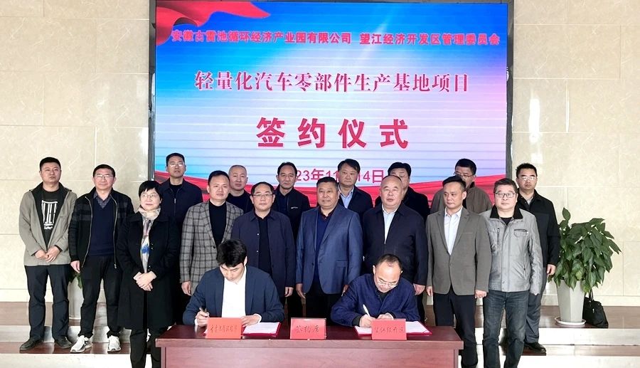 蘇州慧金新材料科技有限公司是一家從事輕合金研發的專精特新企業,于去年11月落戶江蘇常熟市董浜鎮。該公司與上海交通大學材料智能設計團隊開展產學研合作,潛心研發了高強高韌、高導熱、高屈服等八個系列的新型鋁鎂合金,可廣泛應用于汽車、通訊、高鐵、航空、新能源等領域。 安徽古雷池汽車零部件生產基地項目簽約安慶 安徽省安慶市望江縣當地媒體報道,11月14日,安慶市望江經開區與安徽古雷池循環經濟產業園有限公司就輕量化汽車零部件生產基地項目舉行簽約儀式。