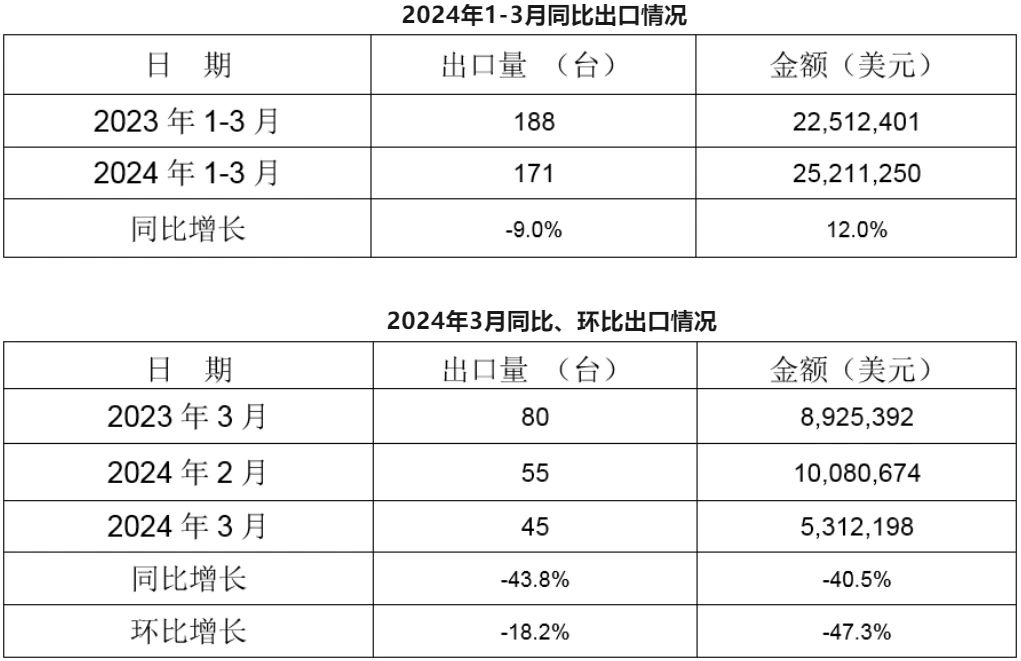 湖北銳美作為江蘇銳美在華中地區(qū)的重要戰(zhàn)略布局,建設(shè)的年產(chǎn)5萬噸汽車零部件項目,引進先進的低壓鑄造設(shè)備和技術(shù),為新能源汽車零部件的輕量化、一體化鑄造提供了堅實的技術(shù)支撐。 1-3月我國冷室壓鑄機出口171臺 來自中國鑄造協(xié)會的消息,根據(jù)海關(guān)數(shù)據(jù)統(tǒng)計,2024年1-3月,我國冷室壓鑄機共計出口171臺,同比下降9%。其中:3月冷室壓鑄機出口45臺,同比下降43.8%,環(huán)比下降18.2%。