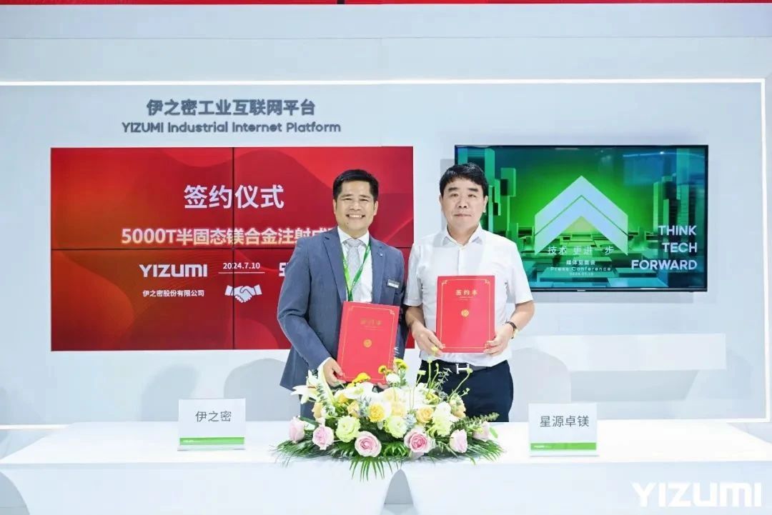 全新Carat 660/720機型主要用于生產超大型一體化鑄件,在抑制變形、改善飛邊、型腔充填、延伸率提升等方面有著顯著優勢。配合緊密的壓鑄島布局,在良品率、循環節拍、穩定性方面具有得天獨厚的優勢,為中國壓鑄企業實現高效生產提供了強有力的保障。 星源卓鎂與伊之密簽約采購5000T半固態鎂合金注射成型機 伊之密發布消息,7月10日,在“2024上海壓鑄展”上,寧波星源卓鎂技術股份有限公司(簡稱:星源卓鎂)與伊之密簽署戰略合作協議,訂購一臺5000T半固態鎂合金注射成型機。這是繼2023年6月星源卓鎂訂購伊之密3200T半固態鎂合金注射成型機并于今年成功交付后,雙方再次達成深度合作。