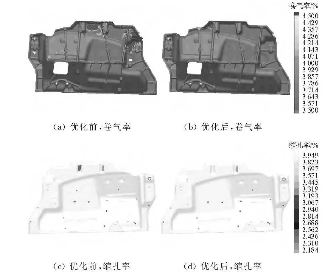 圖4 優(yōu)化前后的卷氣率及縮孔率對比