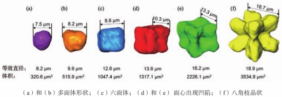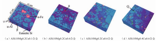圖10 壓鑄AlSi10-0.15Fe0.82Mn合金不同體積初生α-Fe金屬間化合物三維形貌
