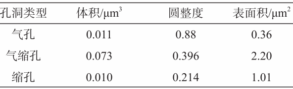 圖3 ADC12壓鑄件中氣孔、氣縮孔和縮孔的三維形貌