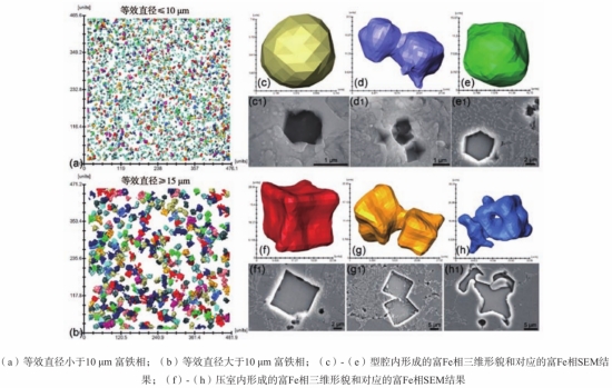 圖6 富Fe相三維形貌及SEM結果