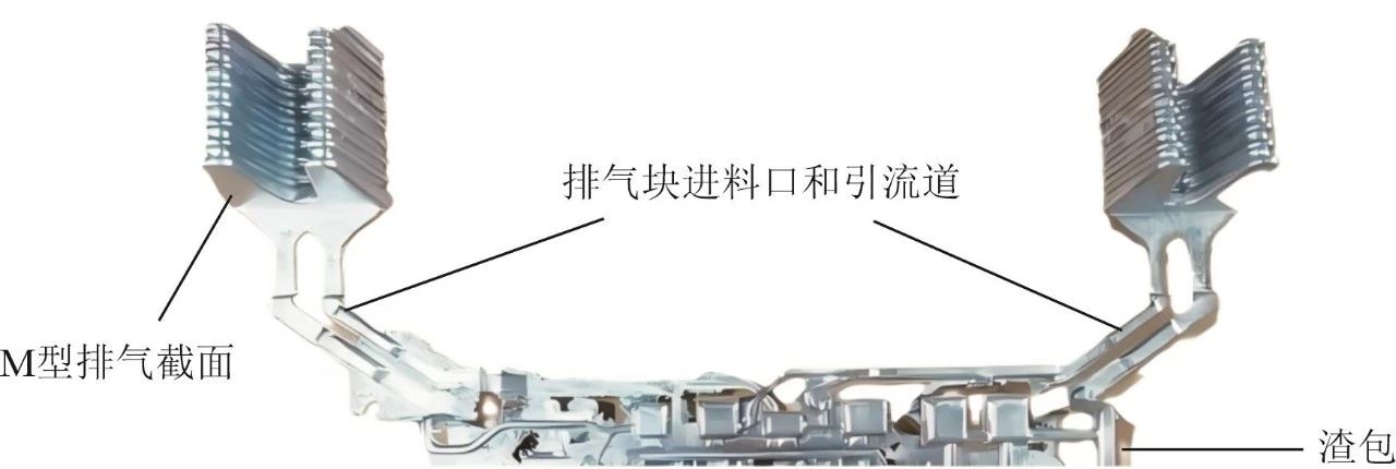 ![]() 導(dǎo)讀 逆變器殼體輪廓尺寸為560 mm×470 mm×110 mm,平均壁厚為3 mm。主要由兩部分組成,一部分是將單片電池直流通過(guò)高頻調(diào)制成電轉(zhuǎn)換30~50 kHz、220 V交流電,另一部分是將交流電整流,濾波,調(diào)制成50 Hz、220 V交流電。這兩部分工作時(shí)都會(huì)釋放大量的熱量。為了確保逆變器工作溫度不超過(guò)60 ℃,逆變器殼體上設(shè)計(jì)了兩個(gè)水冷卻區(qū)域(冷卻水位置1和位置2),冷卻水位置2處需要攪拌磨檫焊實(shí)現(xiàn)密封功能。本研究重點(diǎn)闡述逆變器殼體鑄件的模具設(shè)計(jì),并實(shí)際生產(chǎn),旨在為類似產(chǎn)品的生產(chǎn)提供參考。 圖文結(jié)果 圖1為逆變器殼體,材質(zhì)為AlSi9Cu3合金,該合金適合于摩擦焊,抗拉強(qiáng)度達(dá)320 MPa,殼體質(zhì)量為7.80 kg,鑄造質(zhì)量為12.95 kg,采用16 000 kN壓鑄機(jī)生產(chǎn)。由于鑄件內(nèi)部型腔結(jié)構(gòu)復(fù)雜,水道和密封部位面積較大,致密性要求較高,采用1模1腔多級(jí)順序增速和中等壓力壓鑄工藝生產(chǎn),同時(shí)采用微噴涂技術(shù),以實(shí)現(xiàn)無(wú)脫模廢水的綠色壓鑄。 進(jìn)料系統(tǒng)設(shè)計(jì)見(jiàn)圖2和圖3。模具設(shè)計(jì)了4個(gè)滑塊、普通直冷卻水道、高壓點(diǎn)冷卻裝置,見(jiàn)圖4。CAE模流分析見(jiàn)圖5。模具需要5股主進(jìn)料口和2股側(cè)面進(jìn)料口,需要兩條“M”型集中排氣塊。冷料需要3組渣包和2組排氣引流道收集。5股主進(jìn)料確保鑄件兩大主要水冷卻部位填充順暢,避免在此位置卷氣和多股進(jìn)料匯合,填充時(shí)間須控制在100 ms以內(nèi)。模具內(nèi)澆口位置選擇在鑄件壁厚位置,鋁液在進(jìn)入內(nèi)澆口之前保持增速狀態(tài),以減少能量損失。冷料和型腔內(nèi)殘余氣體推移到設(shè)定的渣包和排氣塊位置。