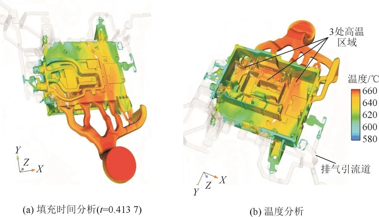 圖5 充型時(shí)間與溫度分析 表1 多級(jí)增速進(jìn)料和排氣系統(tǒng)