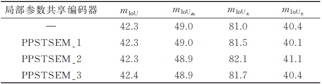 表2 基準(zhǔn)模型在采用不同局部參數(shù)共享雙路編碼器的結(jié)果