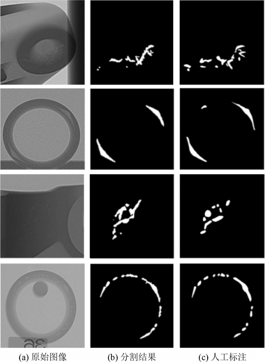 圖8 汽車鋁合金壓鑄件X射線圖像數(shù)據(jù)集標(biāo)注示例 表1 基準(zhǔn)模型在采用不同關(guān)鍵位置邊界感知解碼器的結(jié)果