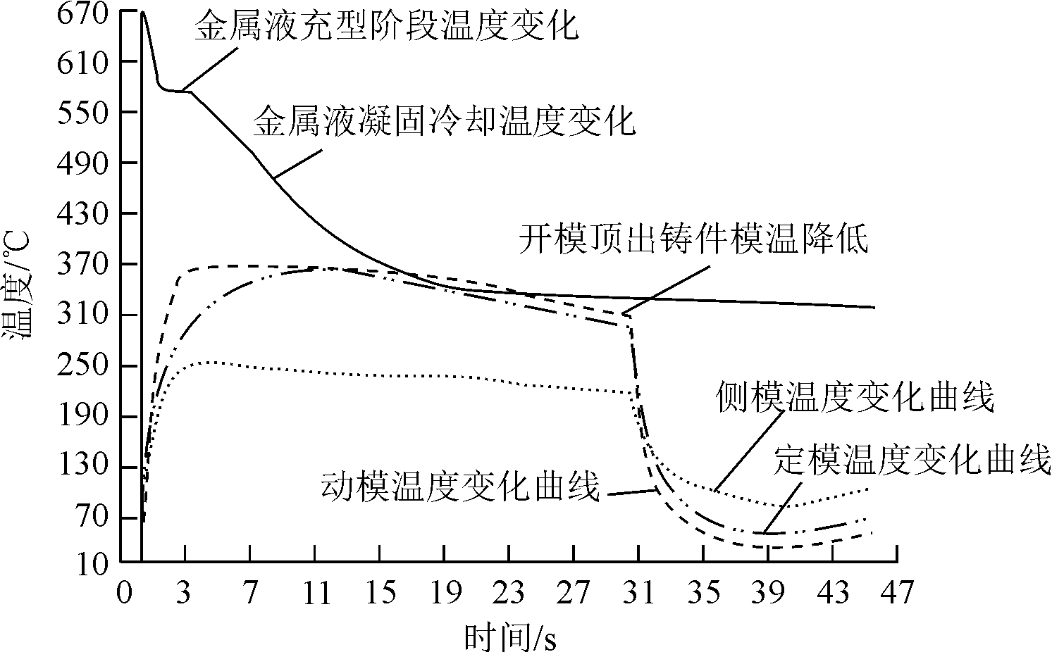 圖3 連接支架壓鑄充型過程溫度模擬