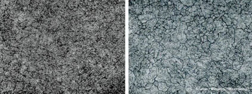 圖5. 合格(左)與不合格(右)的H11鋼顯微組織 (500x) 主要挑戰(zhàn)包括: 均勻加熱和冷卻: 在加熱至奧氏體化溫度及后續(xù)淬火過程中,必須確保大型模具整體溫度均勻分布,以避免因不均勻相變所導(dǎo)致的內(nèi)應(yīng)力積累,從而防止變形或開裂的發(fā)生。 實現(xiàn)足夠的淬火速率: 受H13鋼熱導(dǎo)率限制,從大型模具的截面快速傳導(dǎo)熱量,以達(dá)到NADCA #207規(guī)定的表面熱電偶(Ts)最低淬火速率(至少50°F/分鐘或28°C/分鐘),并非易事。 減小變形和開裂: 在快速淬火過程中,模具表面與芯部之間形成的溫差會引發(fā)不均勻的熱應(yīng)力和組織應(yīng)力,從而顯著增加大型壓鑄模具變形甚至開裂的風(fēng)險。 現(xiàn)有規(guī)范的應(yīng)用: 當(dāng)前行業(yè)規(guī)范(如NADCA #207)主要針對估計重達(dá) 1 噸的模具設(shè)計的。然而,面對重量達(dá)數(shù)噸的大型一體化壓鑄模具,這些規(guī)范的實際適用性與技術(shù)充分性正受到質(zhì)疑。其中,如何真實反映模具整體性能所需的熱處理試樣數(shù)量及位置,已成為亟待解決的關(guān)鍵問題。 設(shè)備能力: 大型一體化模具的熱處理需要具有足夠承重和冷卻能力的真空爐。 大型一體化模具的現(xiàn)代熱處理技術(shù) 為了應(yīng)對大型一體化模具熱處理相關(guān)的挑戰(zhàn),先進(jìn)的真空熱處理技術(shù)和工藝已得到開發(fā)和應(yīng)用。 高壓氣體淬火(HPGQ):在單室或多室真空爐中廣泛應(yīng)用的高壓氣體淬火技術(shù)(HPGQ),通常采用氮氣作為淬火介質(zhì),其壓力通常超過10或15bar,這對大型H13模具實現(xiàn)必要的快速冷卻速率至關(guān)重要。配備徑向氣體噴嘴系統(tǒng)及大功率風(fēng)扇(功率可高達(dá)800千瓦)的先進(jìn)設(shè)備,能夠確保淬火氣體在大型負(fù)載空間內(nèi)實現(xiàn)高效流動(引自溫根斯,《最大化》)。 定向冷卻:部分先進(jìn)真空爐配備了定向可控冷卻系統(tǒng),可通過精確調(diào)控氣流分布模式,提升復(fù)雜形狀模具在冷卻過程中的均勻性,從而減小變形。 中斷淬火(等溫保持):中斷淬火技術(shù)通過在中途特定溫度暫停冷卻(有時稱為 “溫浴” 效應(yīng)),有效緩解因內(nèi)外溫差導(dǎo)致的變形與開裂風(fēng)險。該工藝使模具內(nèi)部熱量得以向外擴(kuò)散,促進(jìn)表面與心部溫度均衡,降低殘余應(yīng)力,之后繼續(xù)淬火過程。 大型真空爐:真空爐制造商已經(jīng)開發(fā)了專用于大型模具熱處理的真空爐,可承載重量達(dá)5,000公斤至8噸的大尺寸、高重量工件。