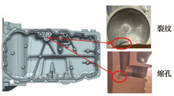 表1 壓鑄工藝參數 04 壓鑄過程中的缺陷及工藝優化 在小批量壓鑄生產過程中,主要存在如圖8所示問題:高壓油道孔(不加工)泄漏,料廢占比30%,且部分泄漏產品孔內目視可見裂紋存在。