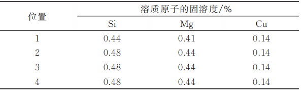圖6 不同固溶時(shí)間下半固態(tài)壓鑄Al-Si-Fe-Mg合金的EMPA組織 表2 Si、Mg和Cu元素在基體中的固溶度