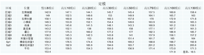 以上實驗證明,熱模慢壓件可以從10件優化至6件,并在壓鑄機程序里進行了設定: