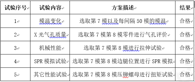 連續兩個班次的試驗件SPR結果正常,未出現異常開裂等問題 ⑤性能試驗