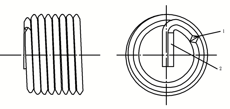 圖3 螺紋襯套結(jié)構(gòu) 1-“V型”缺口、2-余料