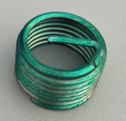 圖2 螺紋襯套裝配機(jī) 1.夾具背板、2.工作臺(tái)、3.雙手啟動(dòng)a、4.雙手啟動(dòng)b、5.道軌a、6.道軌b、7.電動(dòng)扭力板手、8.固定板、9.固定帶、10.裝配螺紋襯套工具、11.聯(lián)動(dòng)氣缸、12.除余料工具、13.壓鑄件、14.裝配夾具、15.對(duì)射式傳感器a、16.接余料盒子、17.對(duì)射式傳感器B、18.接近開關(guān)、19.壓鑄件計(jì)數(shù)顯示器、20.余料計(jì)數(shù)顯示器、21.合格顯示燈、22.數(shù)量不一致顯示燈、23.急停按扭、24.復(fù)位按鈕。 2、裝配機(jī)使用說明 螺紋襯套結(jié)構(gòu)見圖3和圖4,螺紋襯套上有一個(gè)“V型”缺口”與余料連接,余料主要作用是在螺紋襯套裝配到扭力板手上起定位作用。當(dāng)螺紋襯套安裝到螺紋內(nèi)部后,需要將余料在“V型”缺口處進(jìn)行斷開并去除,不能留在產(chǎn)品內(nèi),“V型”缺口的作用是為了容易斷開余料。