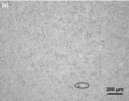 圖4首次試制得到鑄件的不同部位的壓鑄態力學性能 根據鑄件本體的力學性能結果,對1號、3號、5號和6號位置取樣并進行OM觀察,見圖5。可以看出,所有位置的晶粒尺寸基本一致,其組織由細小的α-Al和共晶組織組成(見圖5c)。但1號、5號和6號部位試樣存在明顯的氣孔,尺寸從十幾μm到幾十μm不等(圓圈內所示),而3號部位試樣的顯微組織則未發現明顯的氣孔,這與模擬分析及X射線檢測的結果一致。氣孔是鋁合金壓鑄件常見的缺陷,其不僅使鑄件的有效受力面積減少,還會造成鑄件局部應力集中而成為裂紋源,最終嚴重降低合金的伸長率,一些不規則氣孔的出現,還會使合金的抗拉強度下降。